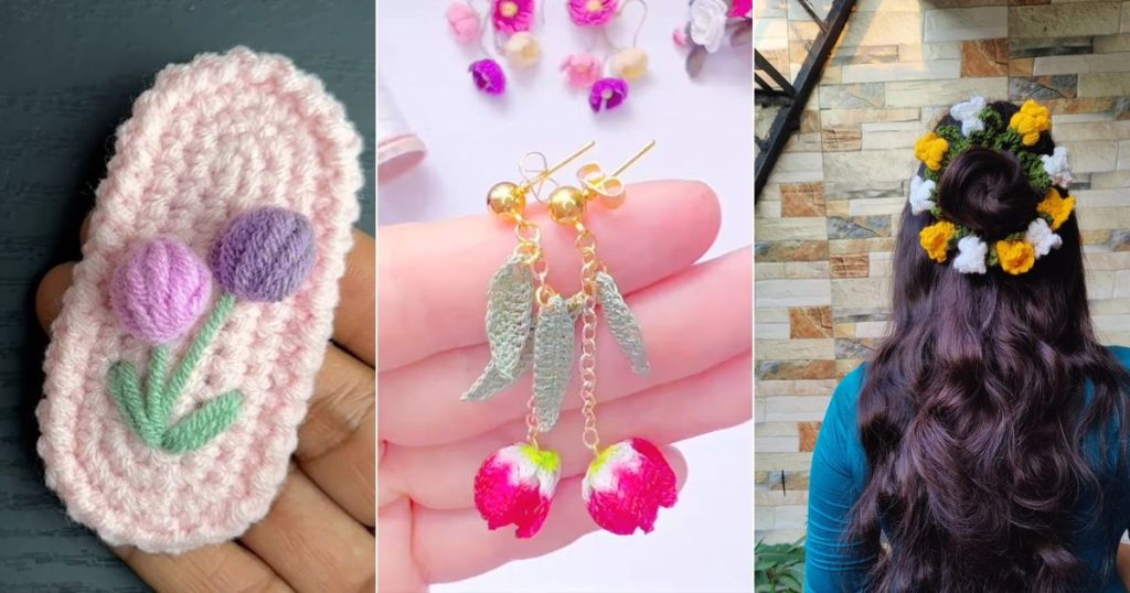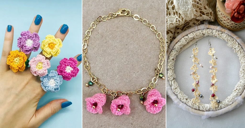 Find inspiration to make DIY handmade jewelry with these elegant crochet floral accessory ideas that…