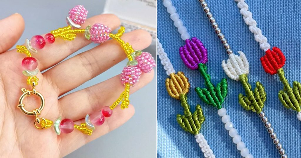 These DIY tulip macrame bracelet designs guide you on how to create delicate floral bracelets…