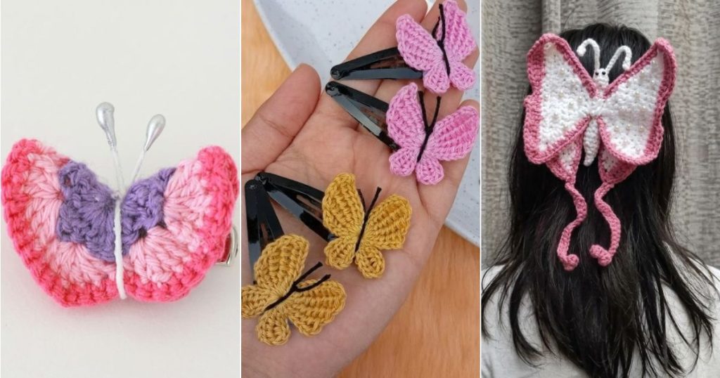 Crochet butterfly hair accessories are a fun way to turn simple yarn into super adorable…