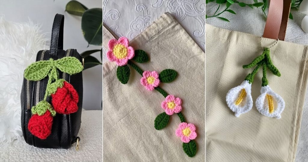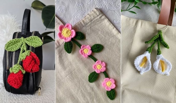 Get ready to decorate your handbags, purses, and other items with these crochet flower bag…