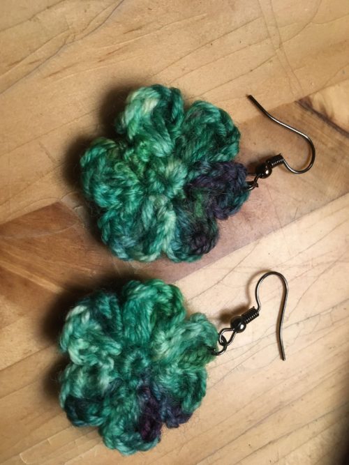 10. Green Crochet Flower Earrings