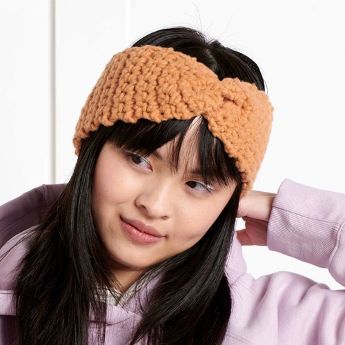 You can use a hundred percent polyester super-bulky fleece yarn to make this headband. It’s so unique and stylish!
