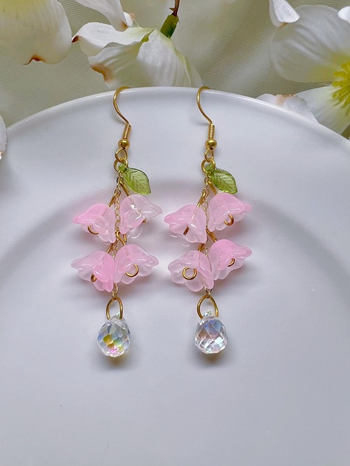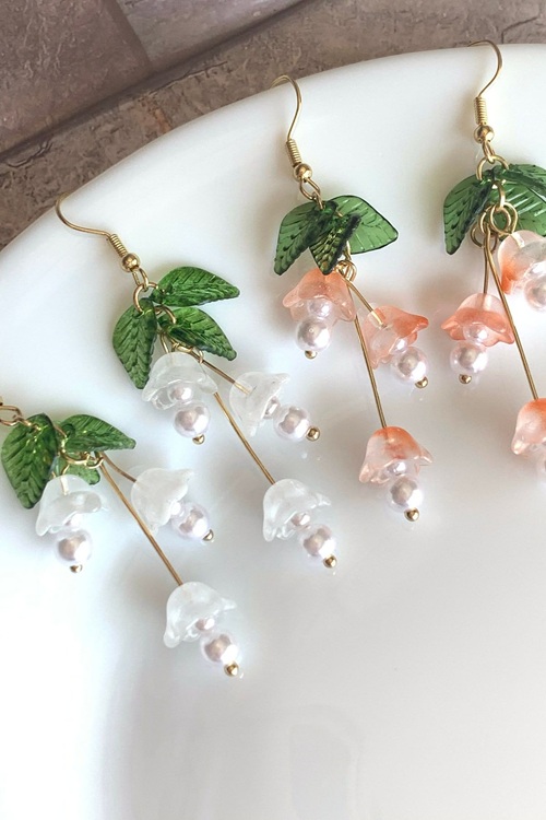 These lily of the valley dangle earrings are typically made of resin or glass. These flowers often symbolise the “returning to happiness”, purity, and luck!