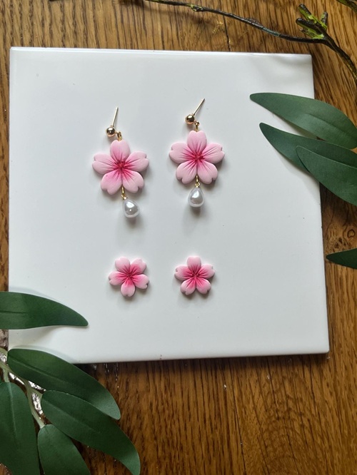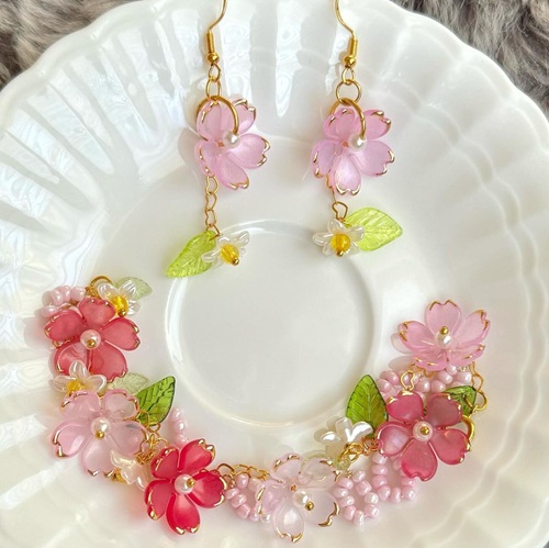 Try these gorgeous handmade pink cherry blossom (sakura) design earrings and neck piece to create a floral aesthetic! You can use real or preserved flowers to create them.