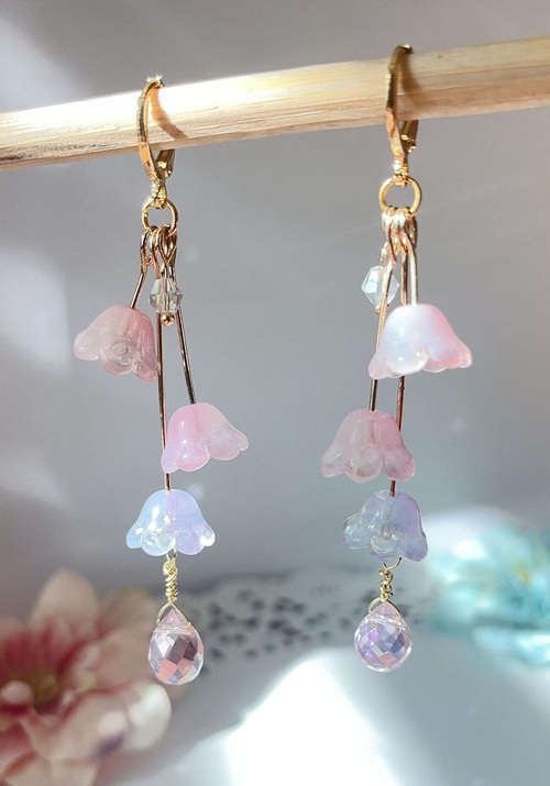 Create that nature-inspired fairy aesthetic with these delicate drop earrings. The light pink and blue bell-shaped flowers add that extra style!