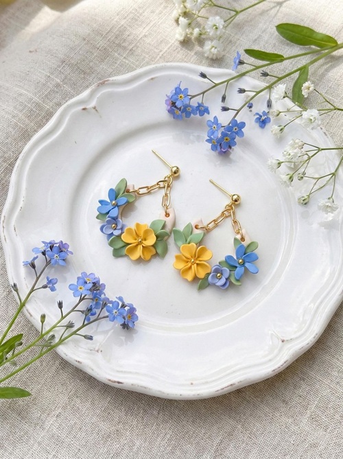Wondering what to pair your summer dresses with? The handmade polymer clay floral drop earrings are the perfect choice!