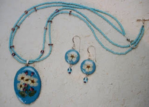 Make a simple yet elegant necklace by arranging dried, pressed flowers in a jewelry bezel and sealing them with UV resin. The glass-like finish is perfect for everyday wear. Here is the tutorial.