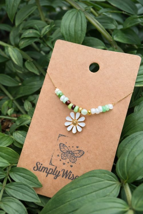 Combine tiny floral charms with seed beads in sandy beige and mossy green for a nature-inspired look. This DIY mimics wildflower meadows in a beautiful way.