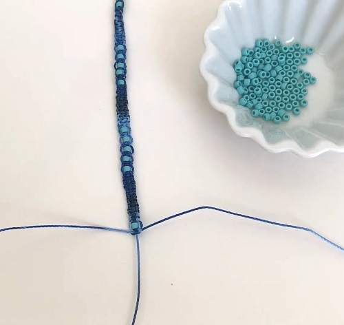 You can create a neat variation using a loom-like base, as done in this video. It is perfect to craft a square-knot bracelet with beads using a Wrapit-style loom.