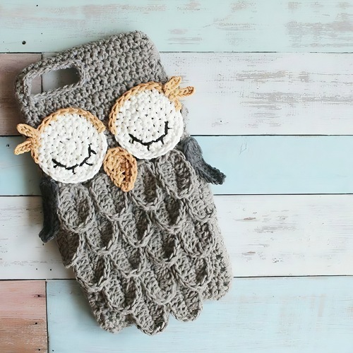 2. Sleepy Owl Crochet Phone Case
