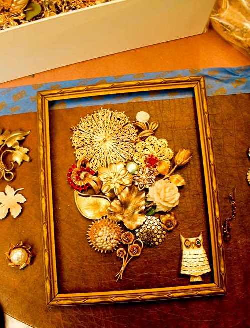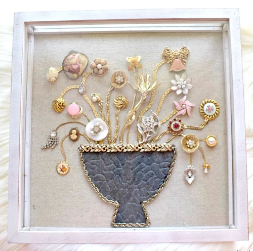 Turn your mismatched gold brooches into a timeless floral arrangement that never wilts. A nice one to begin with!