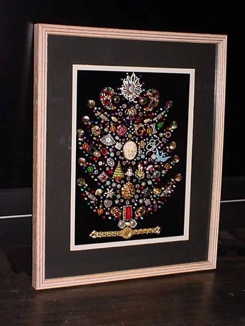 Do you have a collection of mismatched earrings or heirloom brooches gathering dust in a drawer? You can breathe new life into these pieces by turning them into wall art and sparkling mosaics with these DIY jewelry art ideas.