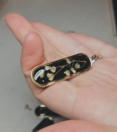 This quick Instagram reel shows how to make whimsical dangling earrings with pressed baby’s breath. The black resin in this idea makes it a unique project.