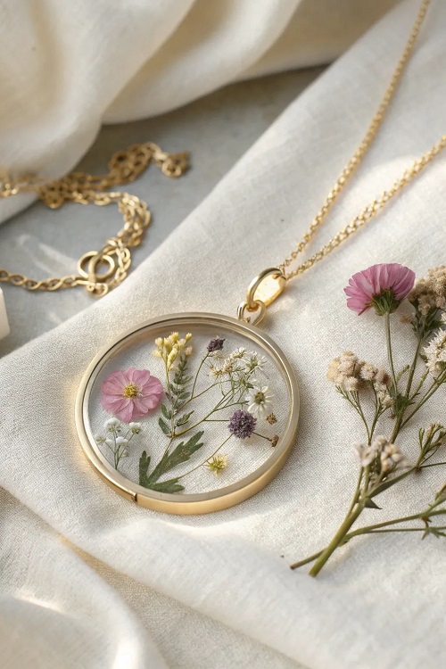 You can explore dozens of pressed flower earring photos and ideas on this Pinterest page. You’ll see styles from minimalist studs to bold resin drops.