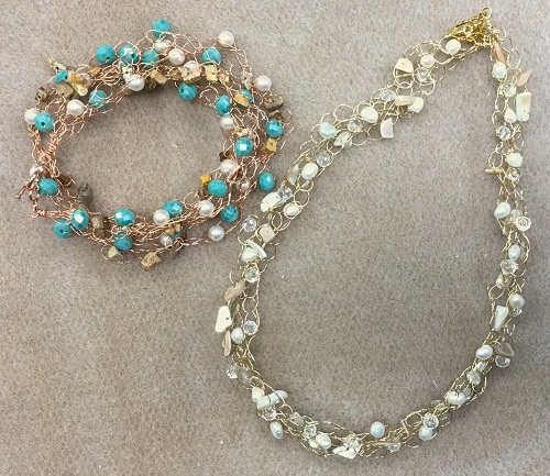How about something with pastel stones in it? This beautiful wire crochet necklace does make a statement!