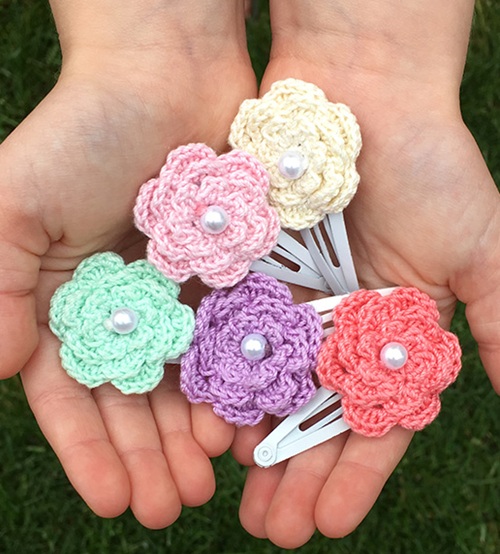 These easy-to-make pearly floral crochet hair accessories add a feminine softness and charm to your personality.