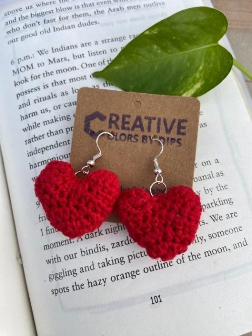 Last but not least, a bright red crochet heart earring that has a puffy look! It will go with any black or white dress for that romantic date night of yours.
