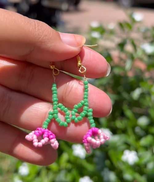 If you enjoy delicate beadwork, these dangling tulips are a joy to make. Check out the video to learn how tiny beads form graceful floral movement.