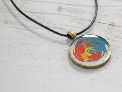 Make one-of-a-kind resin pendants by swirling acrylic paint inside bezel trays and covering with epoxy resin. It will result in these abstract organic shapes that catch the light.