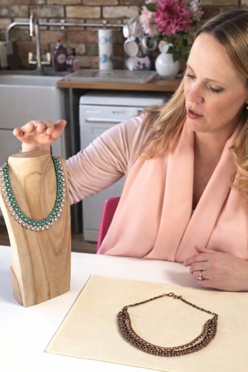 This easy video guide for beginners shows how to make a dramatic beaded necklace with big focal elements and irregular patterns. The layered pattern makes it a unique piece.