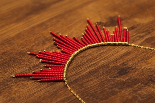Learn how to bead a dramatic sunburst necklace that radiates color and pattern. This DIY is a bold take on abstract design using beads as your artistic medium.