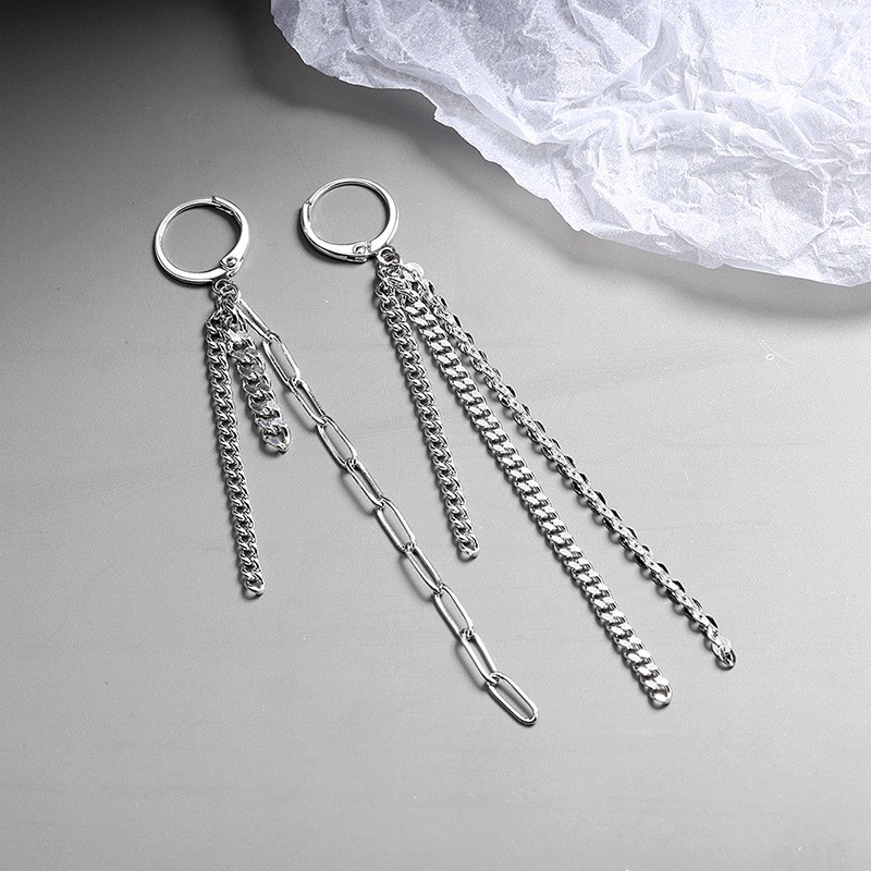 Why wear two identical earrings when one can be a bold chain and the other a minimal, thin one? This idea demonstrates how to balance length and simplicity.