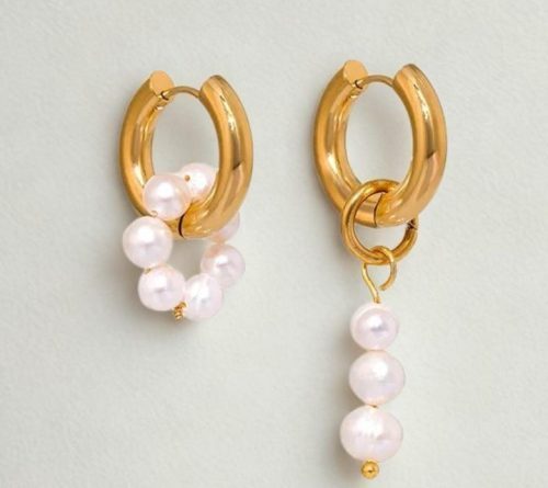 This design plays with elegance by pairing a dangling pearl on one side with a hoop on the other. Here is the visual explanation of how asymmetry still feels classy.