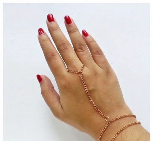 Get a bit creative and link a ring to a wrist cuff with a chain in between for a unique style of body jewelry that focuses on the whole hand. Follow this tutorial to learn the steps.
