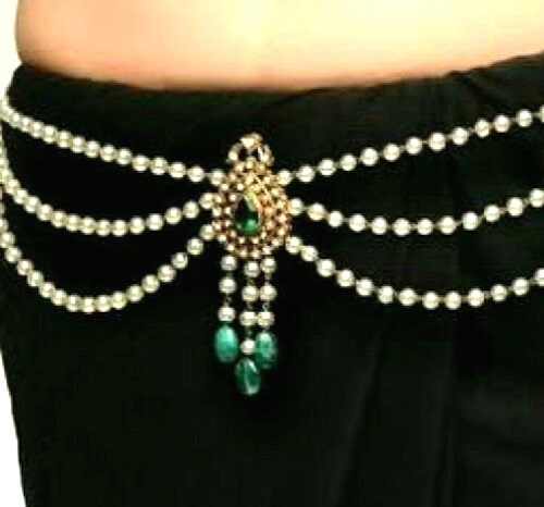 1. Royal Emerald Layered Pearl Waist Chain