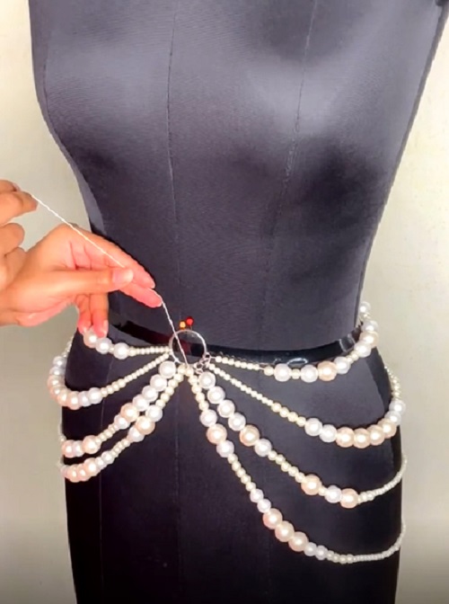 Design gorgeous layered pearl waist chains at home and transform any outfit with graceful pearl detailing and layered sophistication.