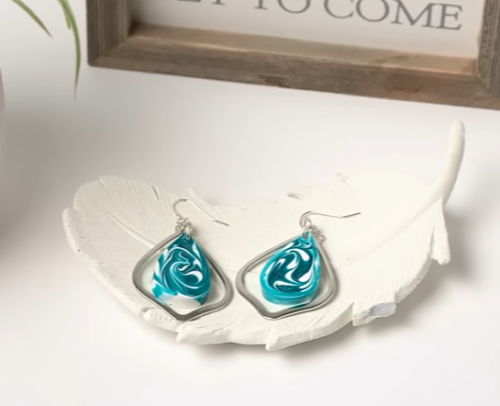 These earrings are all about that liquid mirror-shimmer finish. You can blend metallic mica into resin and let the pigment dance as it cures to create a molten-like texture.