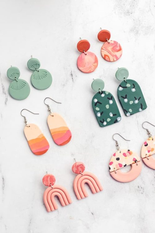 Clay can create many designs that have subtle textures and bold geometrics. They are made by shaping and baking the clay before adding rings and hooks. Read along to find some cute clay earrings in this post!