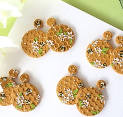 Add a dash of yellow to your look by creating these honeycomb and bees earrings. These cute clay earrings are fun and vibrant and make you stand out from the crowd!