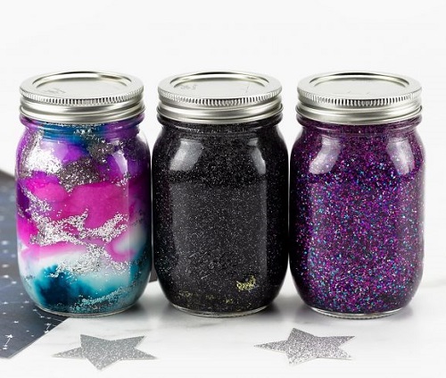 9. Galaxy Glitter Mason Jars DIY Crafts