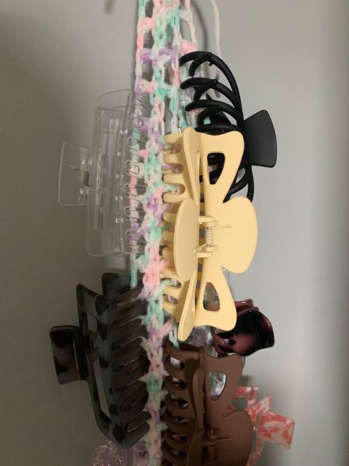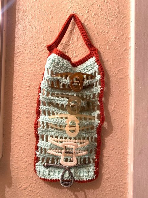 Hair accessories deserve a storage solution that’s just as cute as they are. Likewise, a crochet claw clip organizer keeps your clips neatly displayed, and that too with so much style!