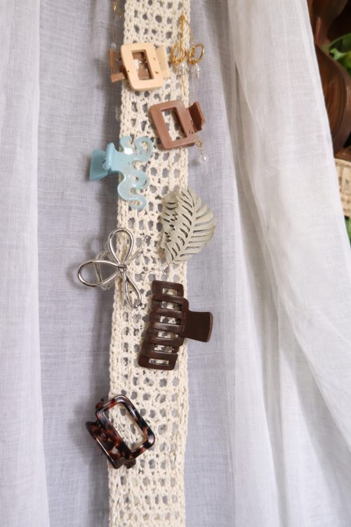 Transform a simple strip of intricate lace crochet into a sophisticated display for your most stylish aesthetic clips.