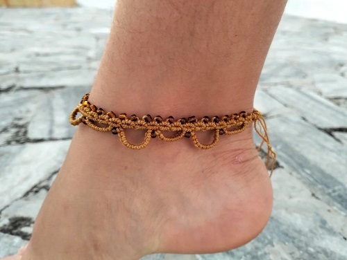 Let’s begin with a boho-chic anklet with beads, perfect for practicing your macrame skills.