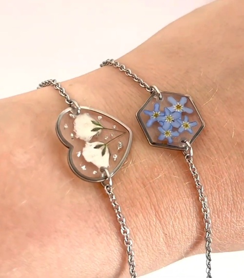If your vibe is minimal, these resin-pressed flower bracelets are a must-have for you! These come together quickly and can be made in a number of shapes.