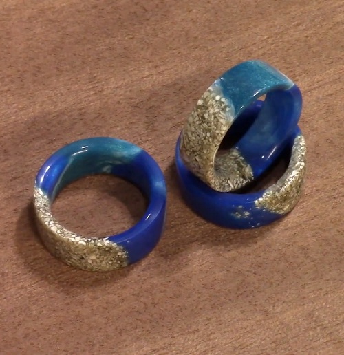 You can blend sand and a hint of blue pigment for a tiny beach on your finger ring. Dive into this video to see the whole trick.