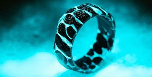 If you want to be more dramatic, mix phosphorescent powder into epoxy, and you’ve got this ring that literally lights up after dark.