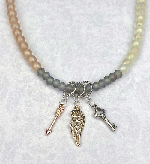 Put a key, an arrow, and a wing charm to create this beaded neckpiece. Perfect for an edgy boho look.