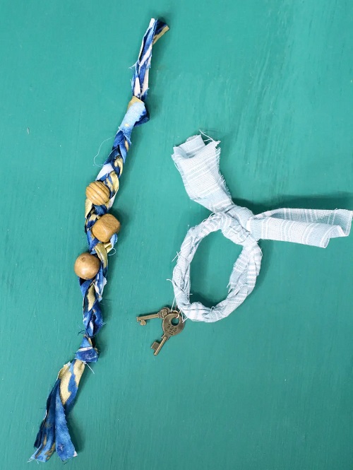 You can unlock a totally unique look by weaving rustic wooden beads and antique keys into your fabric.