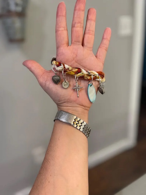 If you are looking to upcycle your old scarves, these braided bandana bracelets are the perfect project for any fashion lover. You can easily customize each piece with unique charms, beads, or metallic accents, too!