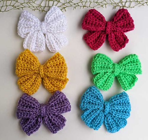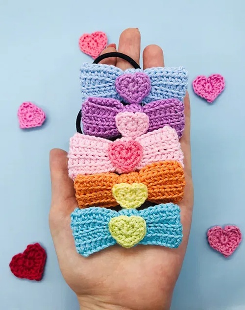 You will fall in love with these colorful bows topped with adorable contrasting hearts. It is perfect to spread the love through your crochet hook.