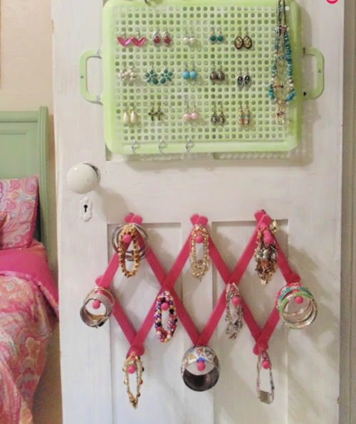 Got an old accordion coat rack lying in the store? Turn it into a functional jewelry holder and add your favourite bracelets to it!