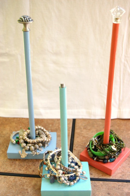 Grab some old pieces of wooden round dowels and start making this easy breezy bracelet or bangle holder.