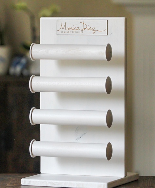 For this one, all you need to buy is a paper towel holder from the store, just add your bracelet, and you’re done!