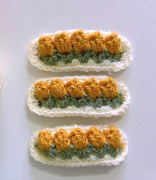 Upgrade those plain metal clips with these cozy, cream-based crochet covers featuring sunny yellow tulips.