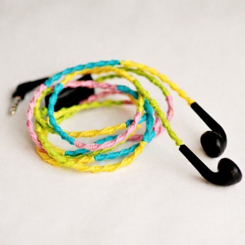 This creative idea adds embroidery designs to headphone covers. It turns everyday items into something unique and stylish.