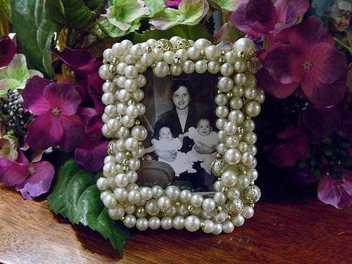 8. Vintage Photoframe Decorated with Pearls Handmade Gift Projects